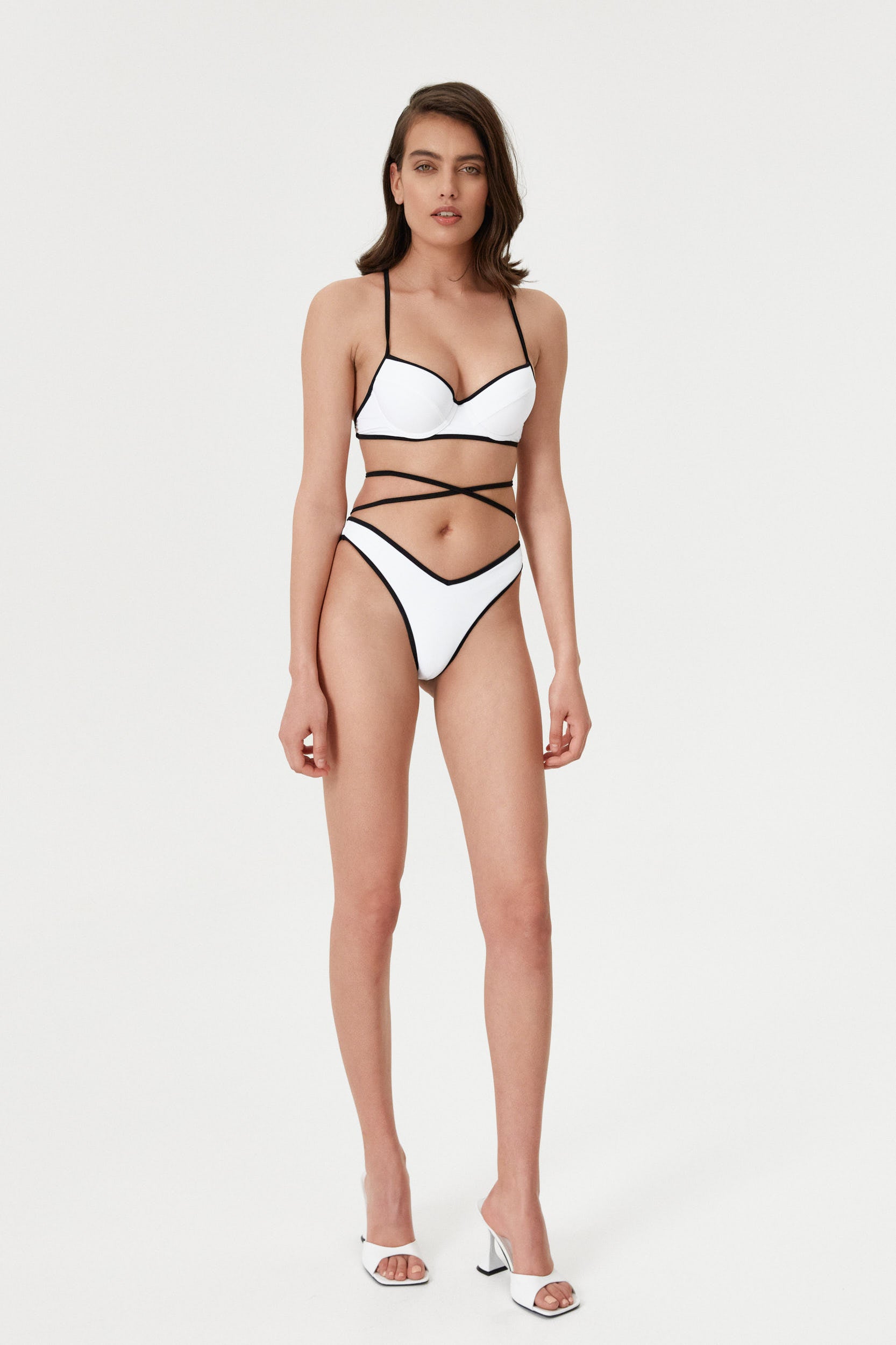 This white two-tone underwire top features contrast binding and adjustable straps. With a decent push-up effect, it provides support and comfort while also adding a trendy touch to your beach look. Perfect for a day at the pool or a relaxing day at the beach.