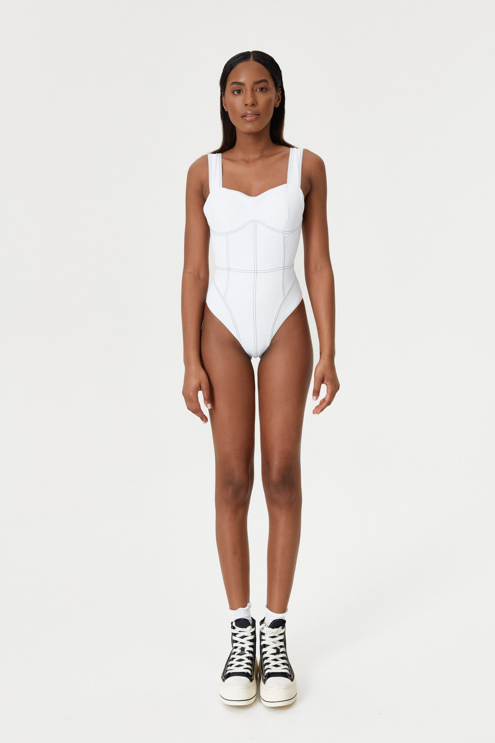 Creat cu atenție la detalii, acest costum de baie întreg cu cusături contrastante negre evidențiază un efect de corset și un spate decupat, pentru un look îndrăzneț și stilat. Croiala de tip brazilian avantajează silueta și îți pune formele în valoare. Completează-ți colecția de costume de baie cu această piesă unică și atrăgătoare.